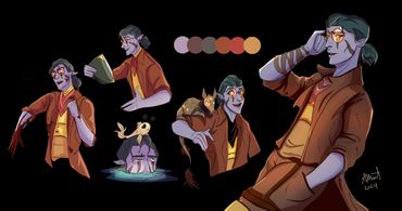 After sketching out different designs, I will oftentimes do a little character exploration. This helps get a better sense of the personality of the character.