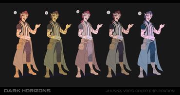 Color exploration is next, testing out various color schemes to see which fit the character best.